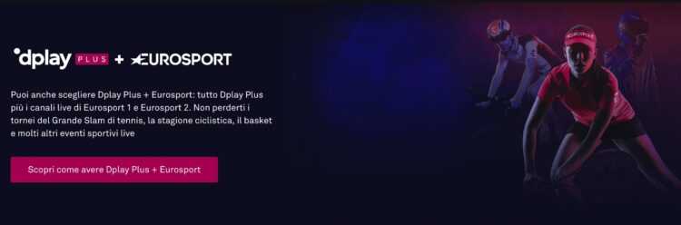 Dplay PLUS amplia e arricchisce la propria offerta di contenuti premium: da domani, infatti, i canali Eurosport 1 ed Eurosport 2 sono disponibili live sulla piattaforma Ott del gruppo Discovery. Gli abbonati a Dplay PLUS e i nuovi abbonati, quindi, hanno la possibilità di scegliere la formula “Dplay PLUS + Eurosport”, accedendo così – oltre a tutti i contenuti di Dplay PLUS con il meglio dell’intettenimento targato Discovery – agli imperdibili eventi live di Eurosport.