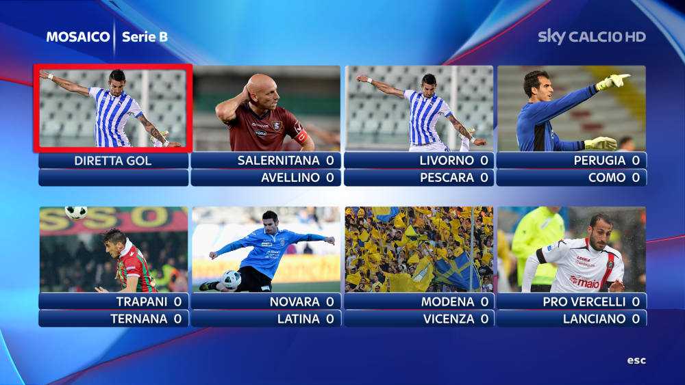 E come la Serie A, anche la Serie B gode di una copertura di altissimo livello, con l’introduzione del mosaico interattivo in HD (attivo dalle 15 alle 17 del sabato) che consente al telespettatore di essere il regista delle proprie emozioni: attraverso il tasto verde del telecomando, si accende unaschermata completa delle partite live in contemporanea, da cui poter scegliere quella preferita. A fine gare, dalle 17 alle 20, Gol Parade con highlights e gol delle gare appena concluse.
