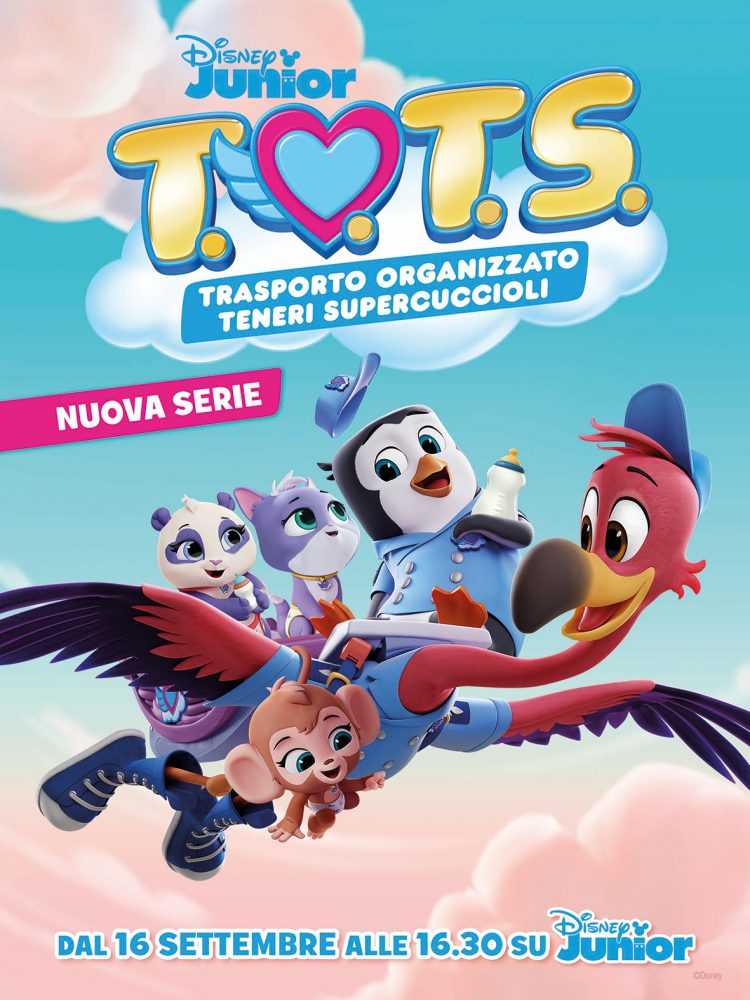 Dal 16 settembre, dal lunedì al venerdì alle 16.30, su Disney Junior (Sky, canale 611) arriva T.O.T.S. – Trasporto Organizzato Teneri Supercuccioli, una nuova commedia animata per bambini dai 2 ai 5 anni, sulle esilaranti avventure del tenace pinguino Pin e del fenicottero di buon cuore Freddy, piloti junior in prova presso la compagnia di Trasporto Organizzato Teneri Supercuccioli (T.O.T.S.).