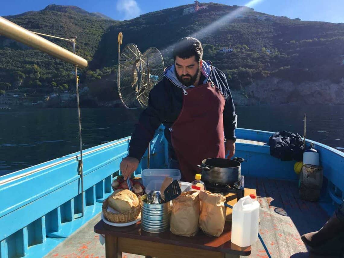 Nella puntata di Vico Equense, Chef Cannavacciuolo, anche se sarà a casa sua e non avrà bisogno di una vera guida, non potrà fare a meno di Carlo, un pescatore che è un vero personaggio del borgo.