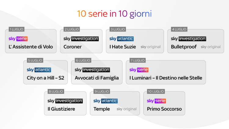 Se Sky Serie sarà interamente dedicato alle serie tv più trasversali e mainstream, dai titoli cult alle novità internazionali più attese, Sky Investigation sarà invece la finestra sul mondo del crime, con decine di titoli – nuovi o di library – in grado di abbracciarne tutte le declinazioni: dal thriller al noir, dalle detective stories al poliziesco scientifico fino agli amatissimi procedural drama, garantendo così un considerevole ampliamento della varietà dei generi proposti, con tantissime proposte rivolte a un pubblico quanto più largo possibile. Entrambi i nuovi canali saranno disponibili anche su Sky Go e in streaming su NOW.