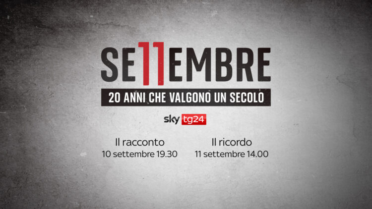 Sky TG24 ricorda l’anniversario con la programmazione dedicata “11 Settembre. 20 anni che valgono un secolo”. Il 10 settembre alle 19.30 il canale diretto da Giuseppe De Bellis proporrà uno speciale a cura di Liliana Faccioli Pintozzi che, con un suggestivo racconto esaltato dall’uso della realtà virtuale ed aumentata, analizzerà gli ultimi due decenni, spiegando in che modo un evento dirompente come l’11 settembre sia stato un vero e proprio “acceleratore” della storia, che ha segnato profondamente la nostra società.