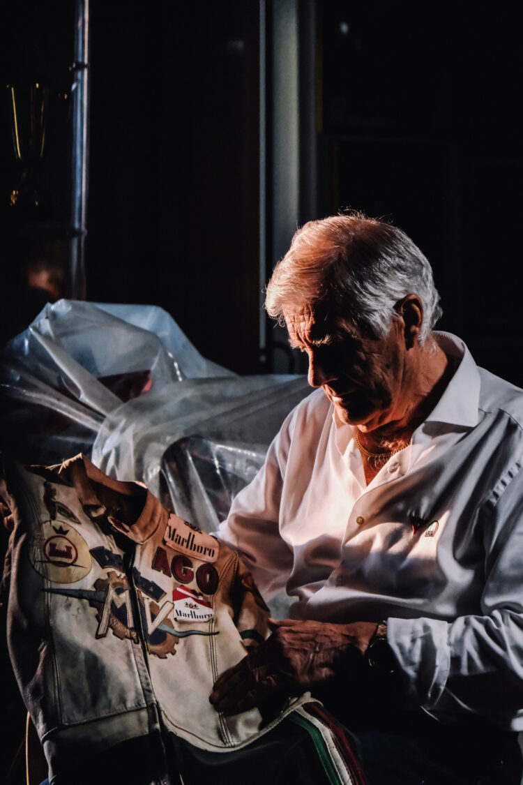 Giacomo Agostini è stato l’eroe di un’epoca in cui la società vedeva nel mezzo meccanico un simbolo irrinunciabile di progresso e libertà. Negli anni Sessanta e Settanta, l’automobile e la motocicletta non erano semplici strumenti, ma simulacri di una modernità che pulsava al ritmo delle sfide e dell’innovazione tecnologica. In quel periodo, il rombo dei motori, l’odore della benzina e l’asfalto che si consumava sotto le ruote rappresentavano quasi un rito sacro, un credo che trovava in Agostini la sua più pura incarnazione. Il mezzo meccanico, trasformato in un’estensione dell’uomo, divenne il tramite attraverso il quale si misuravano coraggio, audacia e immortalità. Giacomo Agostini era il “migliore”, il pilota che osava sfidare la morte, uscendo sempre trionfante. Era colui che attraversava il fuoco dell’inferno senza esserne toccato. Un moderno Parsifal che, con ogni vittoria, confermava la propria leggenda.
